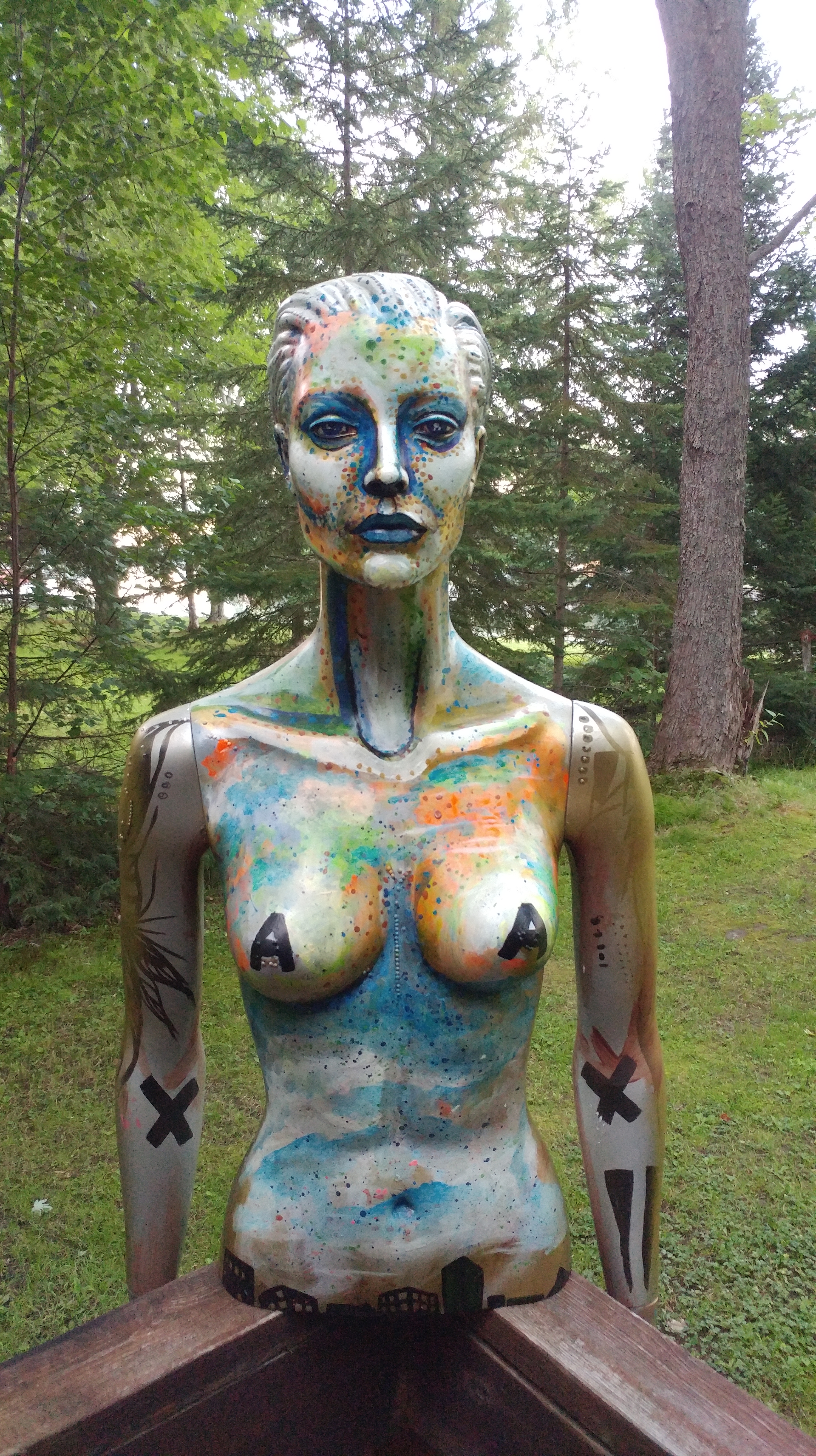 Mannequin extraordinaire! Felicia, my dependable model has accompanied me during many art shows and has served as an ever changing canvas for live art showcases.